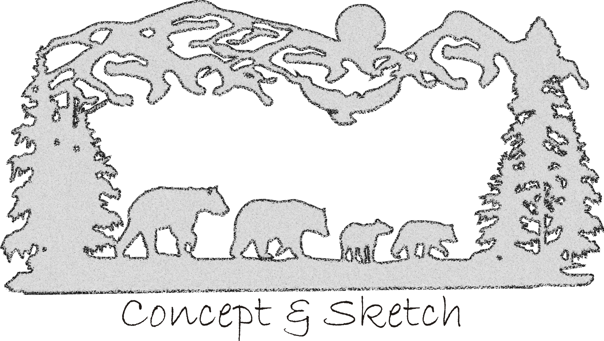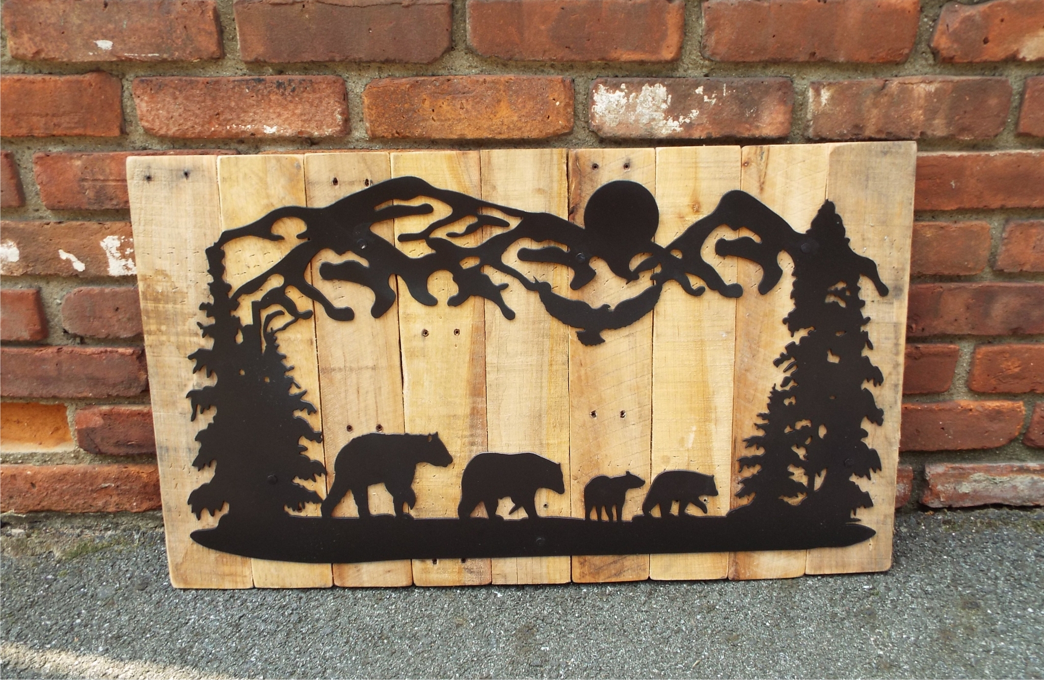 Bears and Cubs | Custom drawn metal scene with reclaimed wood backdrop.